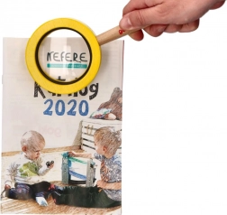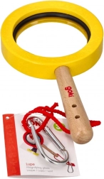 Otroško povečevalo s trdnim lesenim ohišjem, idealno za raziskovanje in opazovanje podrobnosti v naravi.