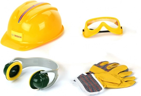 Otroški komplet delavniških dodatkov z licenco BOSCH bo razveselil male mojstre. Vključuje čelado, zaščitne rokavice, zaščitna očala in zaščito za sluh, da se vsak mali popravljalec počuti kot pravi profesionalec.