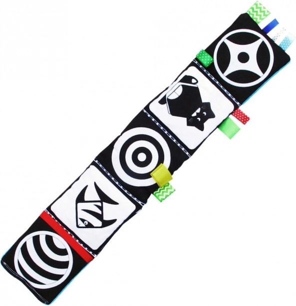 Črno-beli in rdeči motivi pritegnejo pozornost novorojenčkov ter od prvih tednov spodbujajo ostrino vida in osredotočenost.