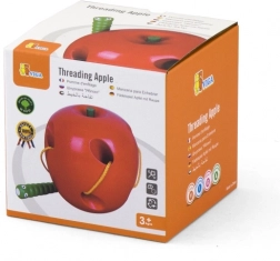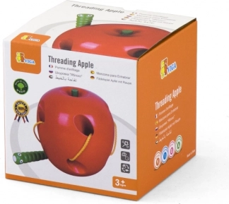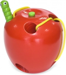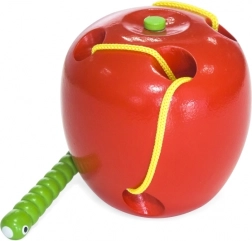 Jabolko je izdelano iz bukovega lesa in lakirano z varnimi, netoksičnimi barvami v živih odtenkih, ki otroke motivirajo k ponavljajoči igri. Idealno kot montessori pripomoček za razvoj fine motorike in zbranosti pri otrocih od 3 let.