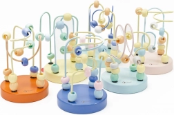 Na kovinskih palicah so čudovite lesene kroglice, ki jih otroci lahko poljubno premikajo, s čimer vadijo natančnost gibov prstov in rok.