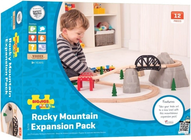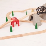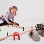 Ta lesena železniška garnitura z visokogorsko stezo je idealna za male avanturiste. Vsebuje 12 delov in omogoča kombinacijo z drugimi železnicami, kar spodbuja njihovo domišljijo in koordinacijo med igro.