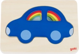 Vstavljanka je zasnovana za varno in prijetno igro: trden rob podlage olajša rokovanje, izrazite barve pa spodbujajo nadaljnje raziskovanje. Znamka GOKI že dolgo poudarja varnost, zdravju neškodljive materiale in trajnost.