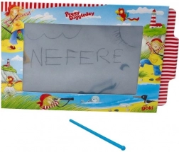 Magnetna tablica Peggy GOKI omogoča otrokom od 2 let, da znova in znova rišejo, žigosajo in brišejo – brez papirja in brez madežev. Kompaktna velikost se udobno prilega v nahrbtnik, zato je odlična spremljevalka na poti, v restavraciji ali v čakalnici.