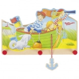 Odkrijte praktičen obešalnik za oblačila, navdihnjen z zgodbami male popotnice Peggy Diggledey, izdelan iz lakiranega lesa in opremljen s tremi kljukami. Večbarvna zasnova prinaša veselje otrokom obeh spolov in zaradi motiva ladje ter viseče sidro bo videti odlično v otroški sobi.
