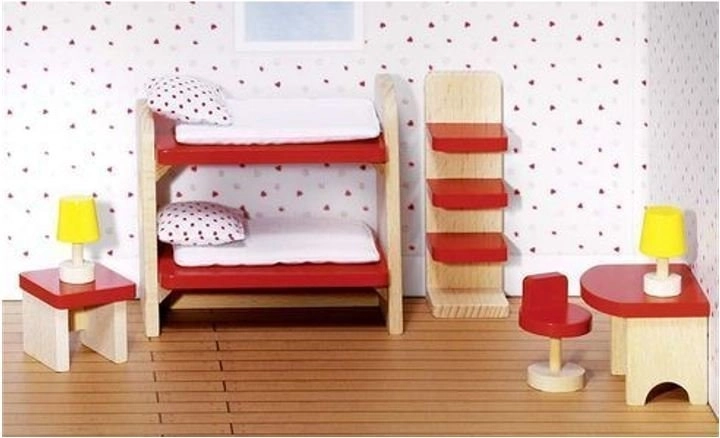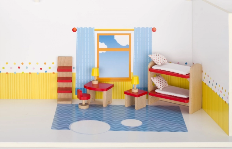 Čudovit set lesenega pohištva za punčke iz linije GOKI Basic spremeni vsak hišico v prijetno otroško sobo. Ponuja čvrsto masivno izvedbo, stabilno konstrukcijo in bogat komplet 11 kosov pohištva in dodatkov v prijetni kombinaciji naravnega lesa in rdeče barve. Odlično za kreativno in domišljijsko igro ter združljivo z vsemi hišicami za punčke GOKI.