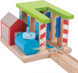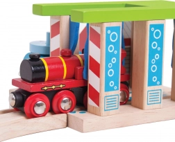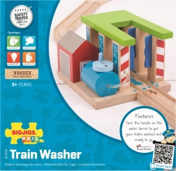Razširite svojo leseno železniško progo z barvito pralnico za vlake BIGJIGS RAIL, ki otrokom prinaša še več zabave in domišljije. Zahvaljujoč vrtljivim stebrom s krtačami lahko mali strojevodje odločijo, ali bo vlak le zapeljal skozi ali doživel pravo “pralno” izkušnjo. Izdelano iz kakovostnega in odgovorno pridobljenega lesa, združljivo z večino lesenih železniških prog na trgu.