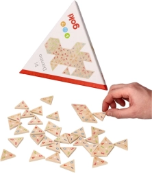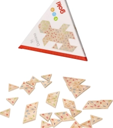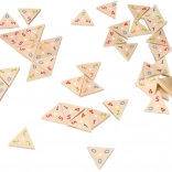 Tri-Domino od Goki je netradicionalna oblika klasične igre, ki si prizadeva potrojiti zabavo! Igralci morajo zložiti trikotne ploščice, da ustvarijo velik trikotnik s štirikratno ali petkratno dolžino stranic.