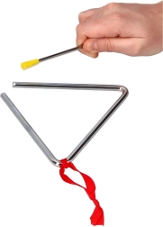 Preprosta igra s paličico z nedrsečim ročajem spodbuja ritmični čut, motoriko in poslušalske veščine. Zaradi univerzalnega zvoka je trikotnik primeren za orkester, bend in domače muziciranje.