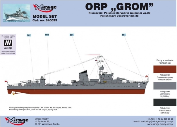 Podroben model rušilca torpedov ORP 'Grom' iz druge svetovne vojne za navdušence nad modelarstvom. Omogoča izdelavo natančne replike znanega poljskega rušilca torpedov s kakovostnimi komponentami.