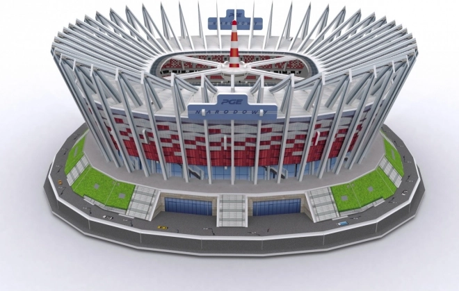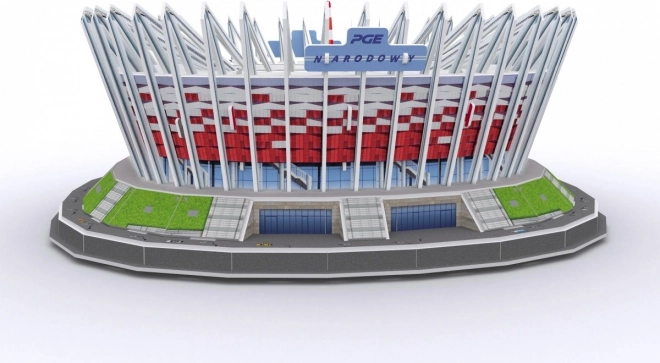 Realističen komplet 3D sestavljanke Nacionalnega stadiona v Varšavi prinaša ure zabave in odličen rezultat. Deli iz približno 3 mm debele pene, prevlečene z laminiranim potiskanim papirjem, natančno prilegajo in se preprosto sestavljajo. Sestavljanje zlahka opravite po priloženih navodilih brez uporabe lepila in škarij – predrezane dele preprosto izlomite iz lista.