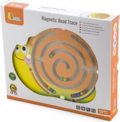 S pomočjo magnetne paličice otroci vodijo kroglice po poti, kar krepi njihovo fino motoriko.