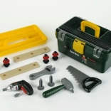 Zabaven komplet za male mojstre: otroški kovček z orodjem in realističnim akumulatorskim izvijačem BOSCH. Idealen za otroke od 3. leta dalje, razvija fino motoriko, ustvarjalnost in domišljijo. Delovanje izvijača zahteva 2× AAA bateriji (nista priloženi).