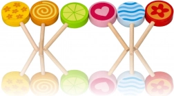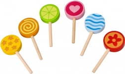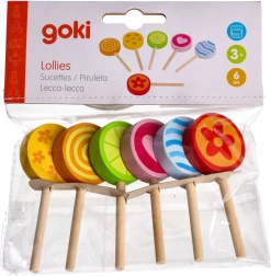 Odkrijte veselje barvitih in lesenih igrač v obliki okusnih lizik od Goki. Ta komplet vsebuje šest različnih dizajnov, vključno s črtami, rožami in srčki. Vsaka izmed njih je idealna za otroško domišljijo in igro v enaki meri.