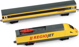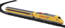 Modelni vlak RegioJet podjetja Student Agency je idealna izbira za vse ljubitelje železnic. S to originalno setom, ki vsebuje rumeno lokomotivo in rumen vagon, se lahko podate na nepozabne pustolovščine. Komplet vključuje 12 ukrivljenih in 6 ravnih tirov, ki omogočajo postavitev tirov z dimenzijami do 147 x 121 cm. Tiri se lahko preprosto razporedijo tako, da tvorijo dva kroga za realističen promet.