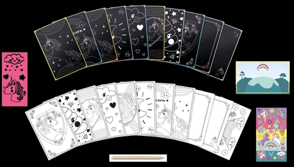 Postrgajte črno plast in odkrijte čudovite barvne slike, ki motivirajo k nadaljnjemu ustvarjanju.