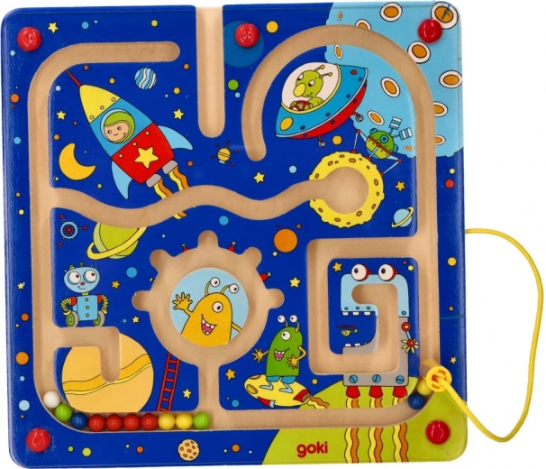 Razvijajte spretnosti svojih otrok s to barvito magnetno igro Vesolje. Igra vključuje magnetno palico na vrvici, ki pomaga vašim otrokom premikati kroglice skozi labirint.