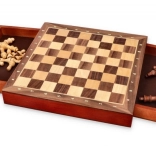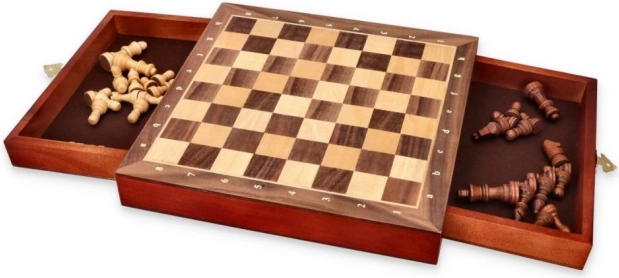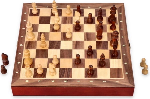 Ta šahovski komplet je odlična izbira za družine in posameznike, ki cenijo klasično igro v praktični embalaži.
