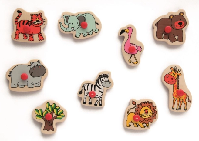Zabaven komplet 2 v 1 združuje žige in sestavljanko z motivom safarija – podpira fino motoriko, ustvarjalnost in spoznavanje živali. Osnova 30 × 22 cm, žigi približno 5 × 4 cm. Primerno za otroke 3+.