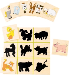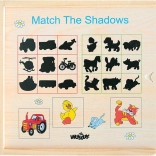 Zabavna didaktična igra za najmlajše: lesene puzzle, pri katerih otroci iščejo pravo senco k slikam. Kakovosten lakiran les, razvoj fine motorike in spoznavanje oblik, živali in vozil. Primerno od 2 let.
