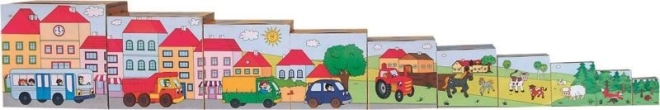 Ti leseni lončki v obliki hišice spodbujajo učenje skozi igro. Otroci lahko lončke zlagajo, vstavljajo in razvrščajo, s čimer izboljšujejo koordinacijo oko–roka, prostorsko predstavo in potrpežljivost. Lakirana površina je gladka in prijetna na dotik.