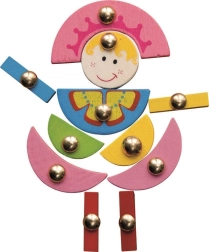 Barvni leseni koščki s kovinskimi držali so enostavni za prijem, razvijajo fino motoriko, urijo koordinacijo oko–roka ter učenje barv in oblik.