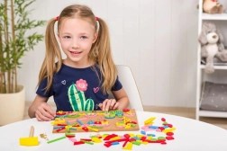 Stabilna plutasta podlaga, trpežni leseni koščki in preprosto orodje zagotavljajo dolgo življenjsko dobo in varno uporabo. Aktivnost odlično podpira zbranost, natančnost in potrpežljivost – poleg tega pa je to zabava, h kateri se otroci radi vračajo.