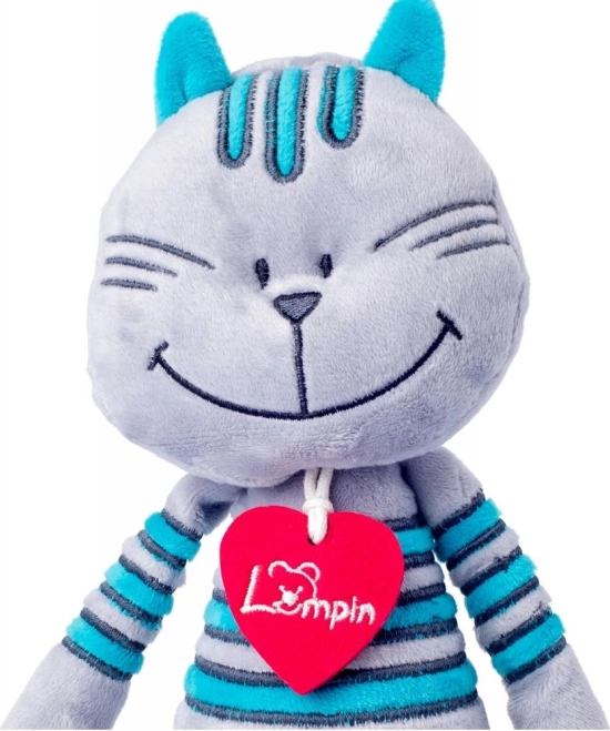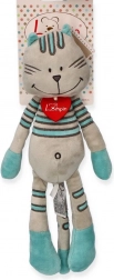 Plišasti maček Lewis je idealen spremljevalec za cartanje in spanje. Njegova mehka in žametna izdelava zagotavlja udobje, medtem ko turkizne črte in filcani srček dodajajo izviren videz, ki ga bodo otroci oboževali.