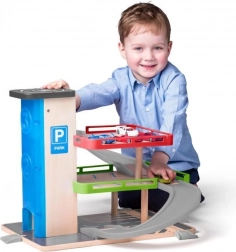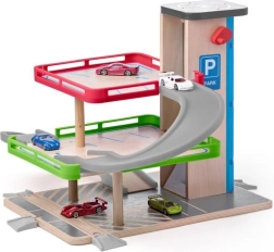 Ta barvita otroška garaža je zasnovana tako, da prinaša zabavo in spodbuja domišljijo otrok. Opremljena je z dvigalom in več nivoji, kar omogoča različne igralne scenarije. Garaža je kombinacija lesa in plastike, kar jo naredi trpežno in hkrati privlačno.