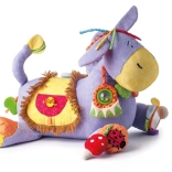 Vsaka podrobnost oslička Laki je zasnovana tako, da spodbuja otrokova čutila z različnimi teksturami in barvnimi kontrasti.