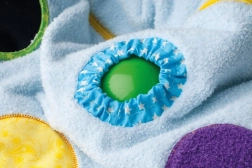 Igrača je narejena iz kakovostnih materialov in zasnovana tako, da spodbuja čutne zaznave otrok z raznolikimi teksturami in barvami.
