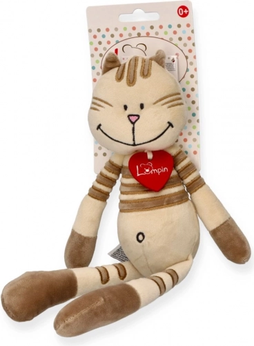 Ljubka plišasta mačka z mehkim bež krznom in rjavimi črtami je idealen prvi plišk za dojenčke in večje otroke. Ima dolge nožice, širok nasmeh in na vratu jo krasi filcasto srček. Je lahka, enostavna za prijemanje in varna za starost 0+ . Za preprosto nego jo lahko perete ročno pri 30 °C.