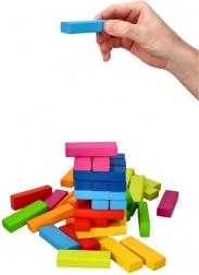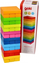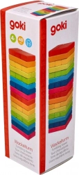 Ravnotežni stolp znamke GOKI prinaša klasično igro, polno napetosti, v moderni mavrični izvedbi. Vsako nadstropje sestavljajo tri barvite lesene ploščice, ki jih zlagate v stabilen stolp, nato pa previdno premikate en del za drugim na njegov vrh. Cilj je čim dlje ohraniti ravnotežje.