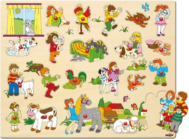 Velika sestavljanka otroci in njihovi ljubljenčki je idealna igrača za razvoj fine motorike in logičnega razmišljanja. Izdelana iz trpežnega lesa, obljublja dolgo življenjsko dobo in brezskrbno uporabo.