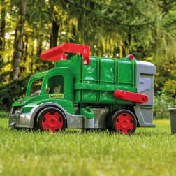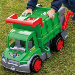 Smetarski tovornjak WADER GIGANT FARMER otrokom prinaša realistično igro čiščenja mesta. Zahvaljujoč premičnemu dvigalu zlahka izpraznijo priloženi zabojnik, odpirajoča se zadnja loputa olajša nakladanje in razkladanje, prosto vrteča se kolesa pa zagotavljajo gladko vožnjo. Nosilnost do 50 kg otrokom omogoča, da sedejo na vozilo in se držijo za praktični zgornji ročaj, medtem ko sprednja vlečna kljuka omogoča vleko ali povezavo z drugim vozilom oziroma vrvjo.