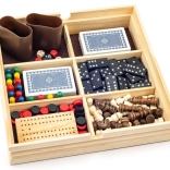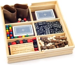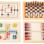 V škatli najdete obračljive ali samostojne igralne plošče za priljubljene igre: šah, mlin, vrhčabi (backgammon) in Človek, ne jezi se. Jasno obarvane figure in kontrastna igralna polja zagotavljajo dobro preglednost tudi za otroke. Kompaktne mere 30 × 28 × 6 cm so odlične za dom, vikend in potovanja.
