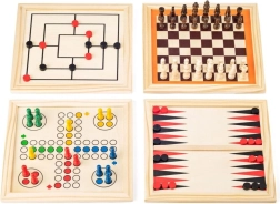 - 4 igre v 1 kompletu: šah, mlin, vrhčabi, Človek, ne jezi se
