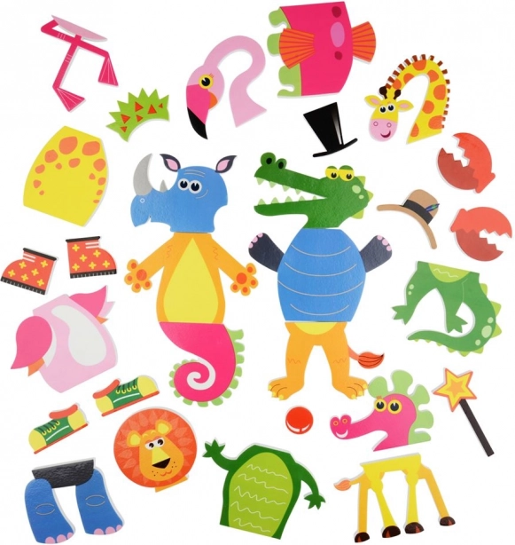 Ustvarjajte krokodila, žirafo, plamenca in druge. Mešajte dele teles in dodatke ter si izmišljujte vedno nove like.