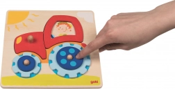 Lesene vstavljanke s sliko traktorja so idealne prve puzzle za najmlajše. Zaradi natančno izrezanih obrisov na podlagi otroci zlahka najdejo pravo mesto za vsak kos in z veseljem dokončajo sliko. Kakovostna izdelava blagovne znamke GOKI zagotavlja trpežnost in varno igro.