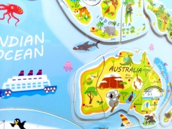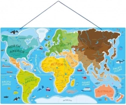 Ta magnetni zemljevid sveta je odličen pripomoček za otroke, da na igriv način spoznavajo države in celine. Spodnji sloj je poenostavljen politični zemljevid, kjer otroci pritrdijo sestavljanke. Učijo se geografske lege in značilnosti posameznih držav, vključno s favno v teh regijah.
