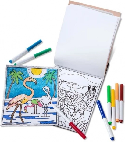 Čarobna pobarvanka Melissa & Doug On the Go – Wild Animals prinaša pametne pattern-reveal prizore, v katerih se po prebarvanju pojavijo čarobni vzorci in barve. Otroci doživijo presenečenje na vsaki strani, hkrati pa vadijo zbranost in domišljijo. Kompakten blok z integriranimi držali za flomastre je idealen za avto, kavarno in izlete.