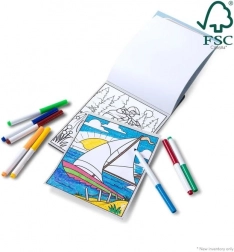 Del pakiranja so barvni flomastri, pritrjeni na blok, zato lahko barvate kadarkoli in kjerkoli – idealno za na pot.