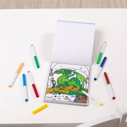 Ta ustvarjalni set združuje blok pobarvank in barvne flomastre v enem. Otroci se potopijo v svet piratov, zmajev, astronavtov ali gozdnih prizorov ter lahko pobarvajo vsako podrobnost po svoji domišljiji. Kompaktne mere 15 × 25 cm olajšajo rokovanje malim rokam in naredijo pobarvanko za odličnega spremljevalca na poti.