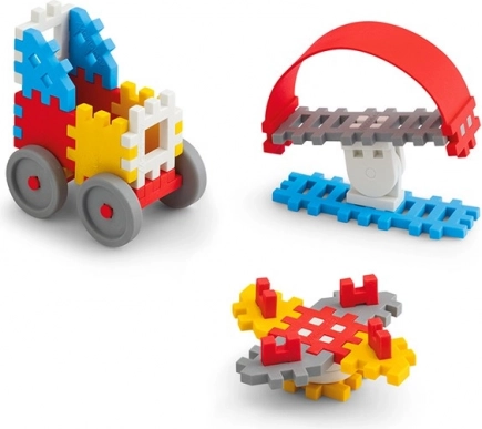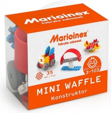 Mini Waffle Konstruktor vsebuje 35 delov, ki so idealni za ustvarjalno oblikovanje. Gradbene kocke so iz mehkih in gumijastih materialov, kar zagotavlja varno in tiho igro. Zaradi majhnosti je komplet bolj mobilen in shranljiv.