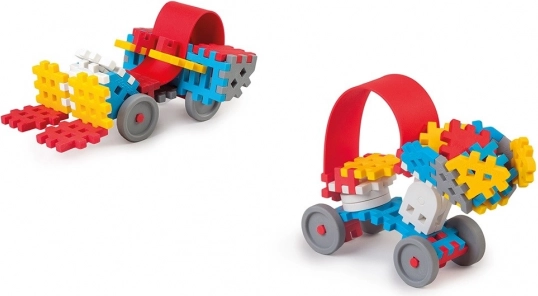 Mini gradbeni komplet Waffle s 35 elementi, ki ponuja nove možnosti konstrukcije. Varni in tihi material primeren za otroke, z inovativno tehnologijo izdelave omogoča prilagodljivost.