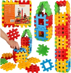 Ta gradbeni komplet z 24 barvitimi elementi velikosti približno 10,5 × 10,5 cm je idealen za prve konstrukcijske igre. Velike in enostavno oprijemljive kocke se varno spajajo, držijo obliko ter jih je mogoče večkrat razstaviti in sestaviti brez poškodb. Otroci se bodo zabavali, hkrati pa krepili koordinacijo oko–roka in logično razmišljanje.