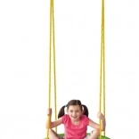 Vesel in barvit videz gugalnice z rdečim sedežem in zelenim robom takoj pritegne pozornost vsakega otroka.