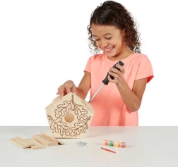 Komplet omogoča otrokom, da samostojno sestavijo in okrasijo ptičjo hišico po lastni domišljiji.