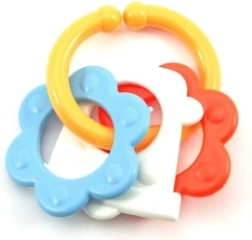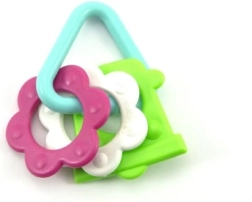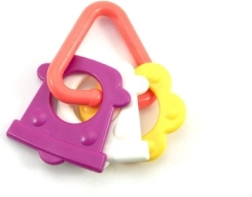 Naše barvito plastično grizalo je zasnovano za majhne ročice, ki zlahka primejo vsako od njegovih oblik. Zaradi svoje raznolikosti bo vašemu dojenčku stimuliralo tako čute kot dlesni.