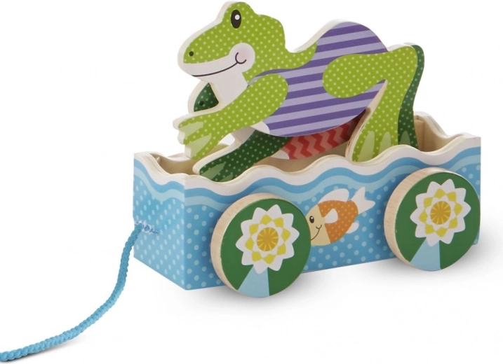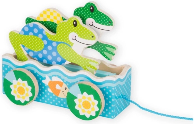 Lesena vlečna igrača v obliki žabe je odlična za zabavo in razvoj motoričnih spretnosti vaših otrok. S 64 cm dolgo vrvico je idealna za aktivno igro.